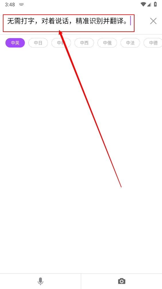 3、还可以点击上方的翻译框输入相关句子。如图所示。