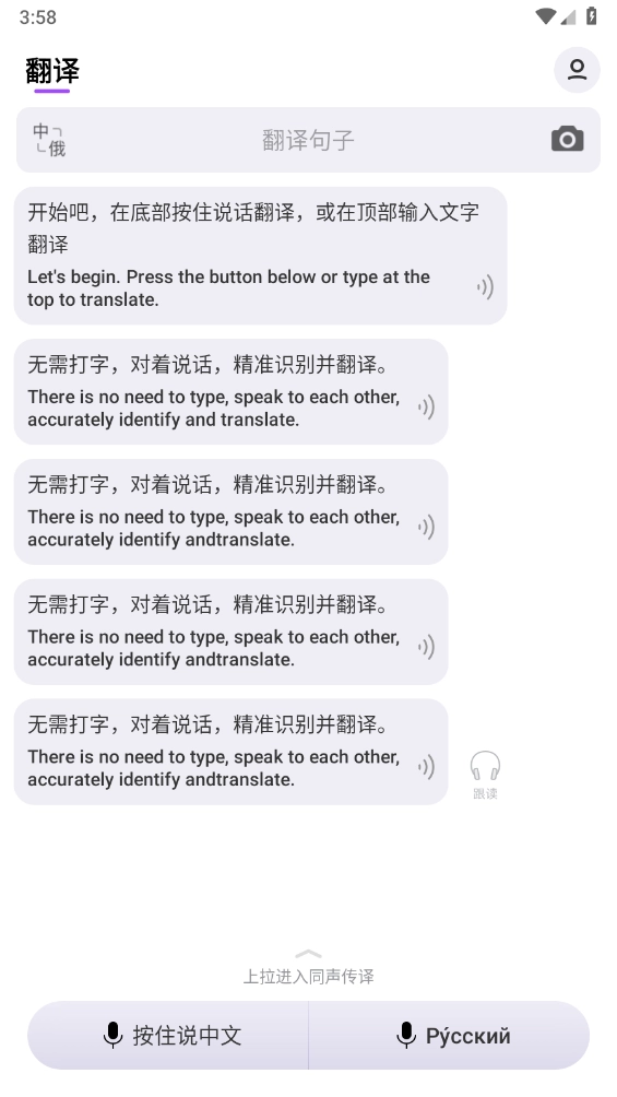 1、该软件拥有语音翻译功能,可精准识别并翻译用户所说的内容。