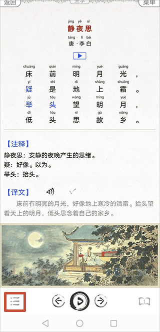 5、具备对照朗诵、逐句跟读以及文本默写的功能,这些功能对于孩子学习国学诗词是很有帮助的。