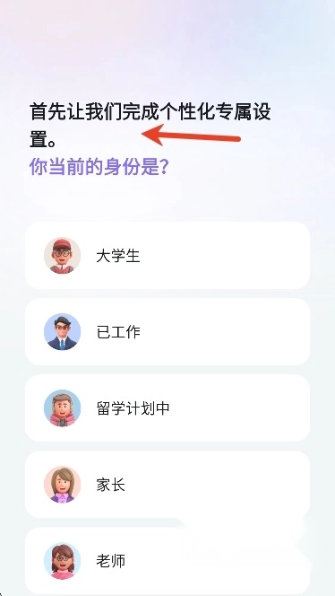登录后,用户们需要先完成个性化专属设置,包括身份,学习计划等,完成后就可以开启与AI虚拟人的对话训练啦