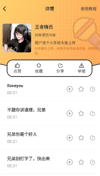 2、定期更新语音包内容,紧跟潮流和热点,提供新颖多样的变声选项。