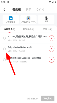 1、打开音频快剪App,找到并点击“导入”或“添加”选项,接着导入你需要提取音乐的视频文件