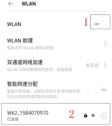 1. 屏掌控操作:先关闭移动数据和蓝牙,接着进入设置界面,开启WLAN功能,然后连接控制卡对应的Wi-Fi(该Wi-Fi名称以设备型号开头,例如W62、W00、W02等),其出厂默认密码为“88888888”。