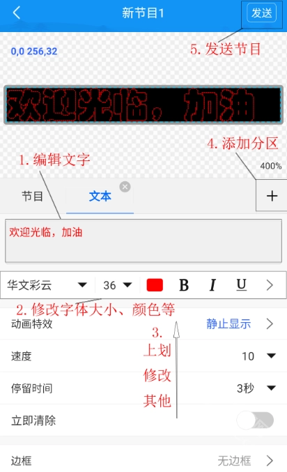 4. 编辑节目并发送,节目发送完成后,若屏幕显示正常,可跳过下一步的“硬件设置”。