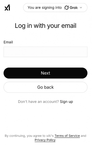 1、并打开grok后,首次使用想要先登录注册。