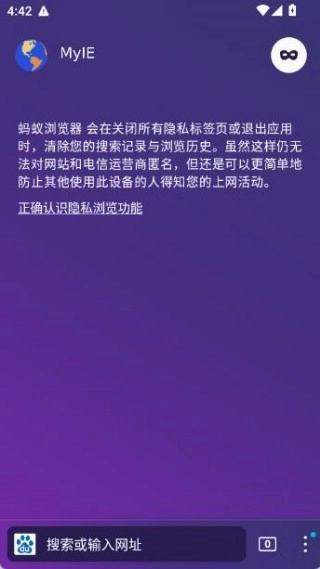 1、在搜索框输入网址或关键词,即可快速访问网站,系统会自动屏蔽广告与追踪脚本。