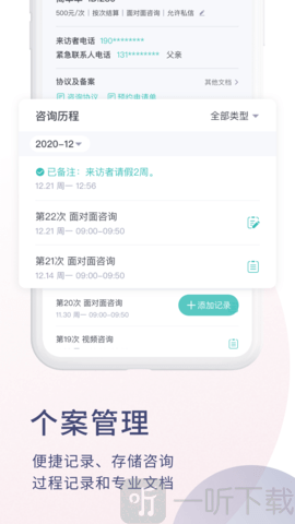 2. 咨询历史、流程记录、安全协议、危机评估与备案。