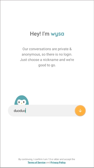 1、登录Wysa后,给自己选择一个昵称。