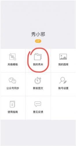 登录秀米之后,点击首页上“我的秀米”。
