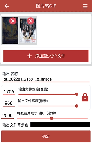 3、在该界面依次填写名称、宽度、高度、毫秒数以及背景色,填写完毕后点击确定按钮,操作完成后,即可在动图分类下找到已制作完成的GIF图片。