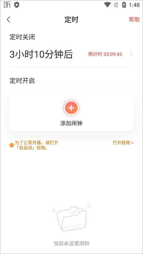 2、在音频播放页面,点击【小闹钟符号】即可设置开启/关闭。