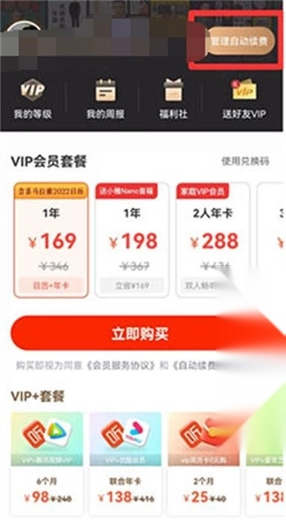 2、接着进入“我的会员”页面,就能看到自己的会员到期时间,此时点击右上角的【管理自动续费】选项。