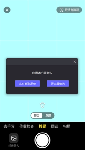 4、进入拍照搜题功能,只需启动摄像头,即可扫描、答题,学习变得如此简单。
