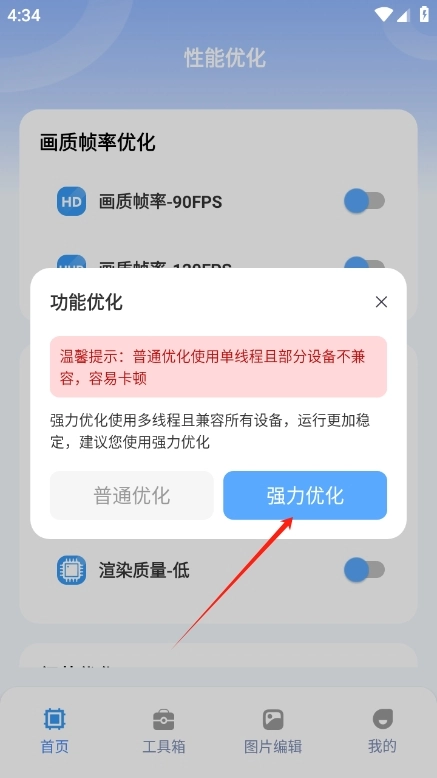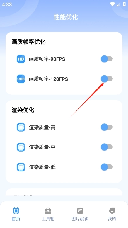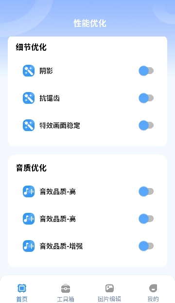 2. 启动软件后,在主界面里挑选想要开启的画质优化功能。