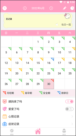 女生的专属健康小助手,集记录、预测、提醒功能于一体,帮你告别忘记经期的窘迫时刻;还能记录每日心情与健康点滴,助力养成规律生活习惯,让你随时掌握自身生理状态。
