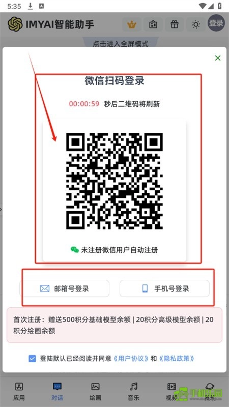 2、您可以使用微信扫码或邮箱、号登录IMYAI智能助手App。