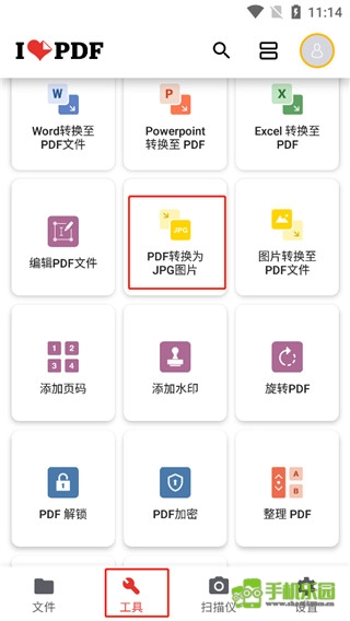 1、打开本站的iLovePDF,进入软件首页后,在工具列表里选择PDF转JPG功能;