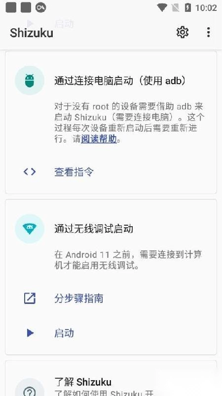 11以下版本的需要使用电脑通过ADB命令来启动Shizuku;