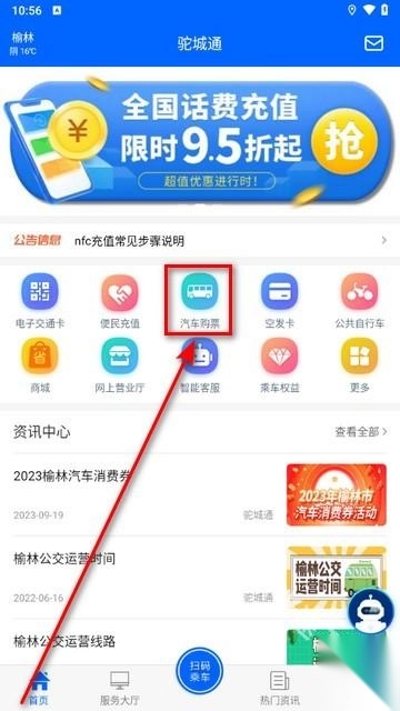 2、进入软件后,点击“汽车购票”。