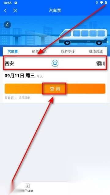 3、输入起始城市和目的城市,并点击“查询”。