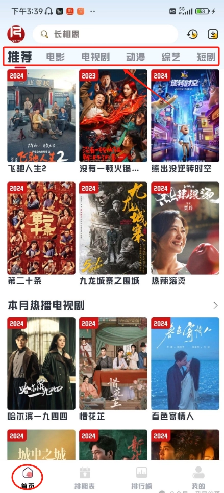 打开若惜追剧后,首页设有推荐、电影、电视剧、动漫、综艺、短剧等板块,能够满足不同年龄层和兴趣爱好的需求。