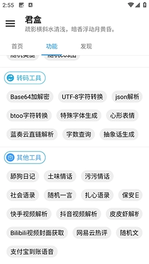 2、这里具备十分丰富的功能,用户能够在君盒中随时进行选择与使用。