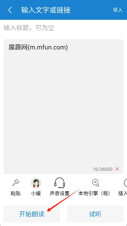 1、用户首先需要在魔趣网(m.mfun.com)并语音朗读助手到上。