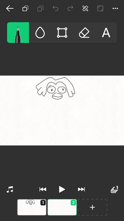 3、接下来就可以开始创作了,在一块画布上画出你想要的样式,接着点击下方再创建一块画布并画出不同的样式,点击下方的播放按钮就能实现动画效果了。