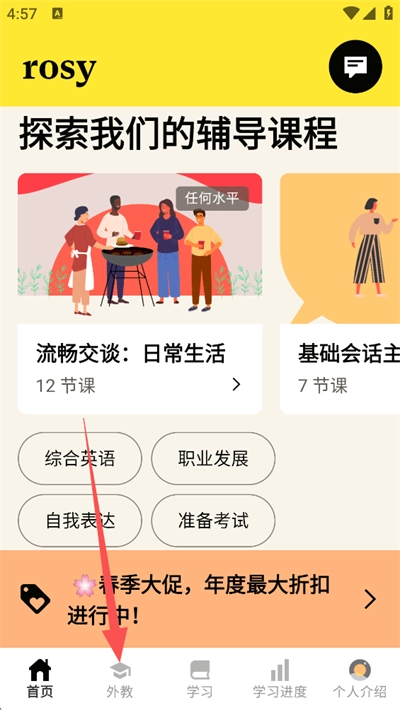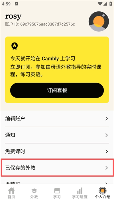 1、打开Cambly App,点击底部导航栏的"外教"选项,进入外教搜索页面;