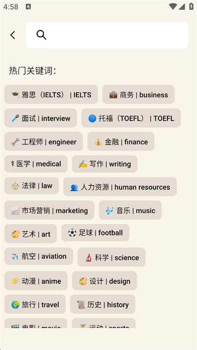 2、在搜索框或热门关键词中选择目标主题,也可直接输入关键词搜索;