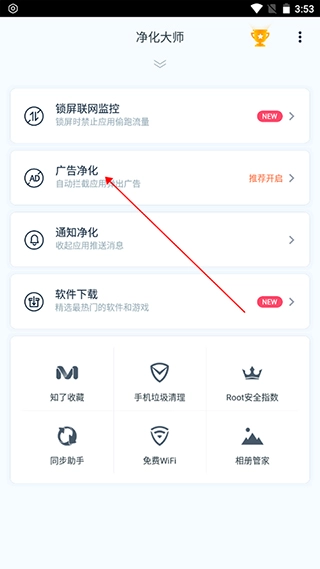 2. 在新打开的页面中点击【广告净化】选项。