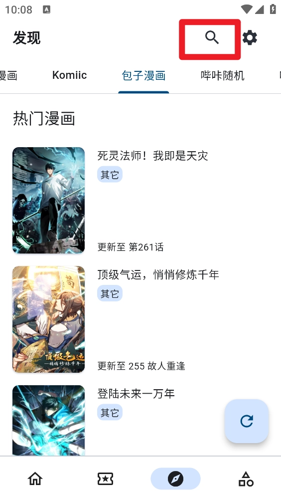 6、最后在分类和发现板块刷新就可以选择喜欢的漫画进行阅读啦。