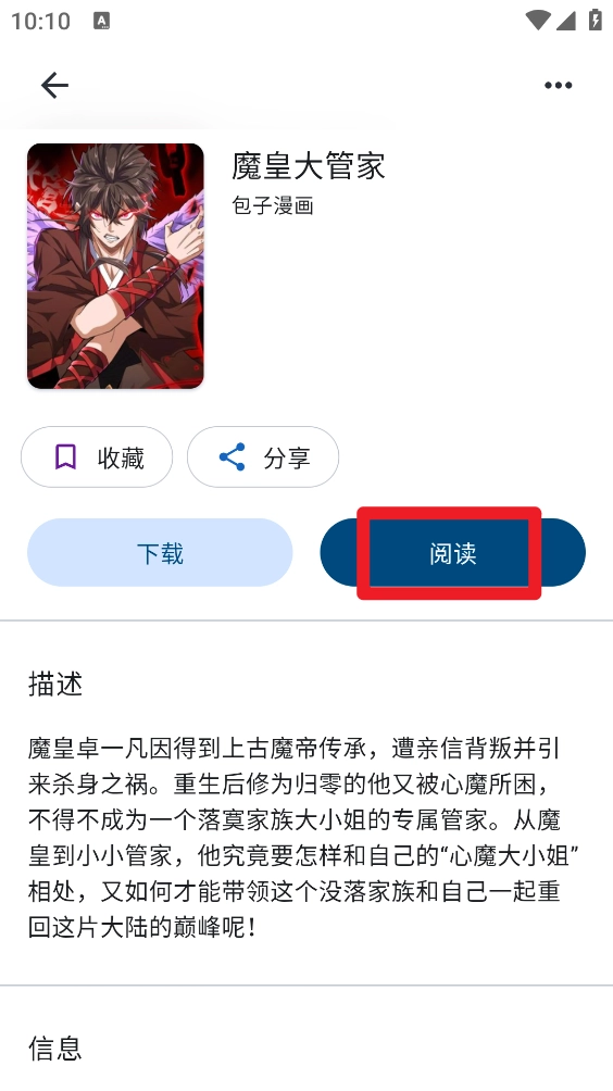5、在漫画详情页支持、收藏和分享等。