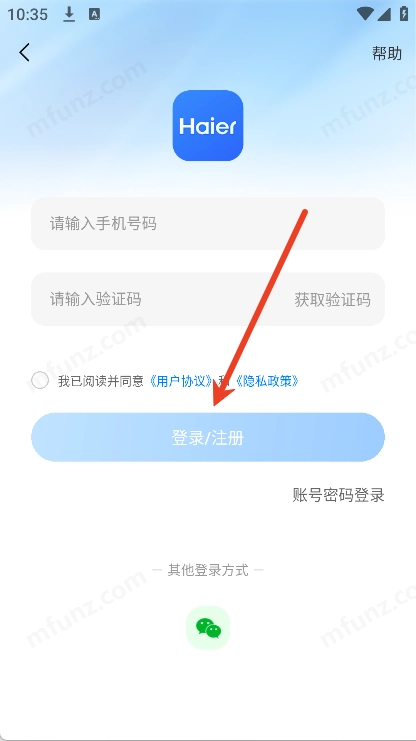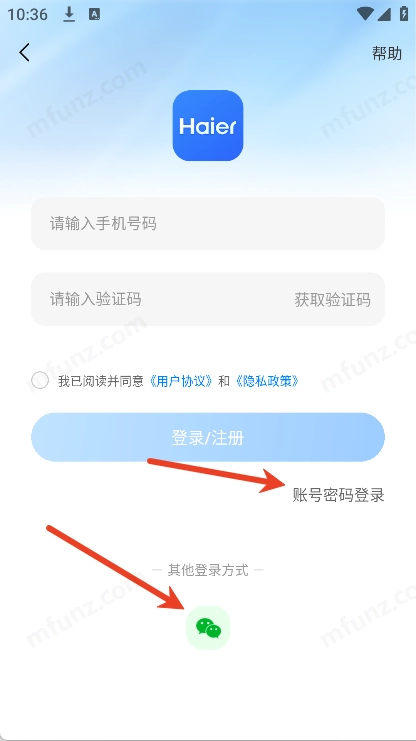 5、也可以用账号密码或微信一键登录