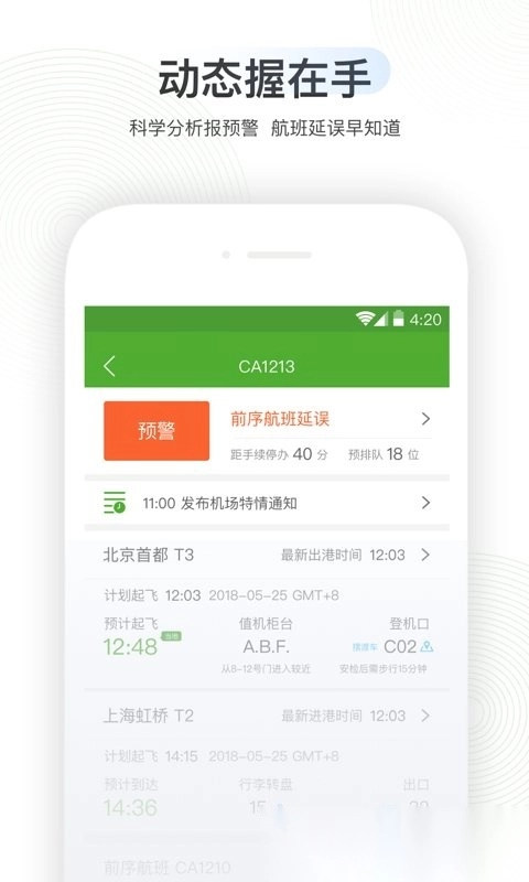 4. 航班动态预警:及时获取航班状态变化,延误信息提前通知;