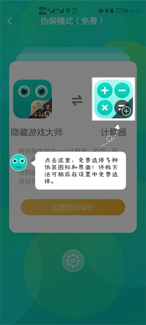 2、点击伪装并设置密码,即可隐藏,实现完美隐藏。