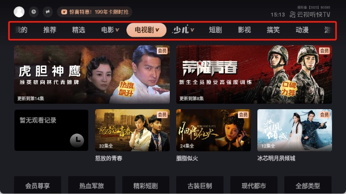 云视听快tv目前没有搜索框,若需要搜索内容,可尝试按住遥控器的话筒键,借助语音搜索功能来满足搜索需求。