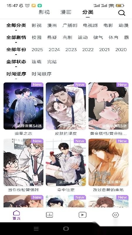 1、首页顶部点击“影视/漫画”→选择剧情标签→浏览推荐作品。