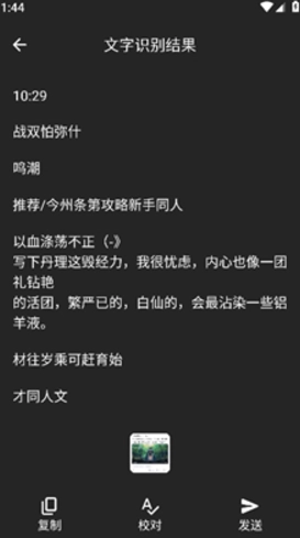3、扫描之后提取文字,可以进行复制、校对或分享。