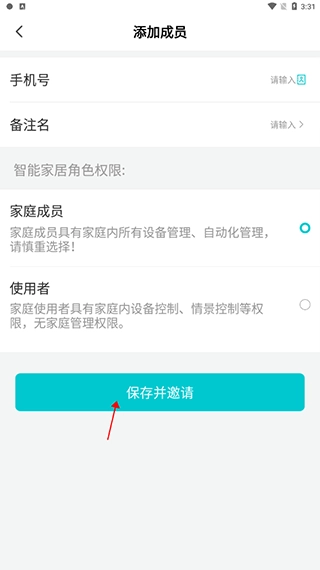 3、依据要求填写备注信息,接着点击保存并发送邀请,待对方接受邀请后,就能顺利完成添加操作。