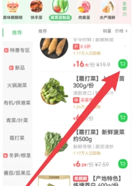 3、浏览商品后,选择心仪食材点击“加入购物车”,可随时调整数量或继续选购。
