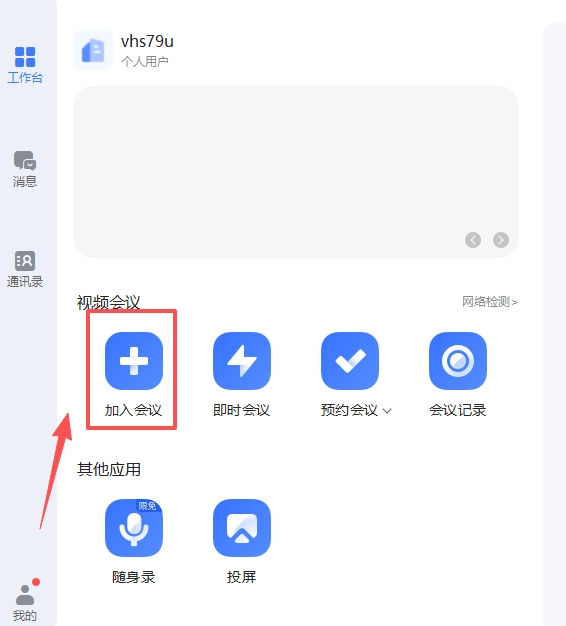 2、输入会议ID,点击【加入会议】即可快速入会。