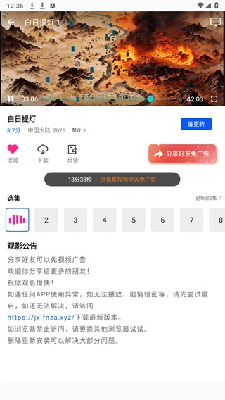 更新提醒:当收集到的剧集更新时,会自动发送通知提醒用户观看剧情。