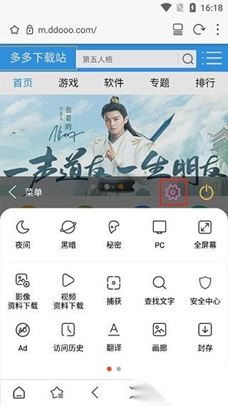 2、点击右下角菜单按键,点击菜单栏上的设置按钮;