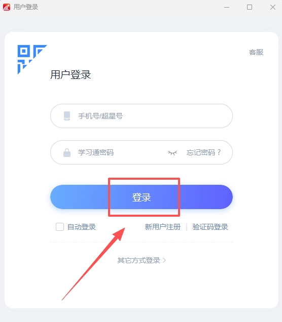 打开学习通后,点击左上角的【登录】按钮,选择合适的登录方式(例如手机号、学号、第三方账号等),完成登录操作就可以了。