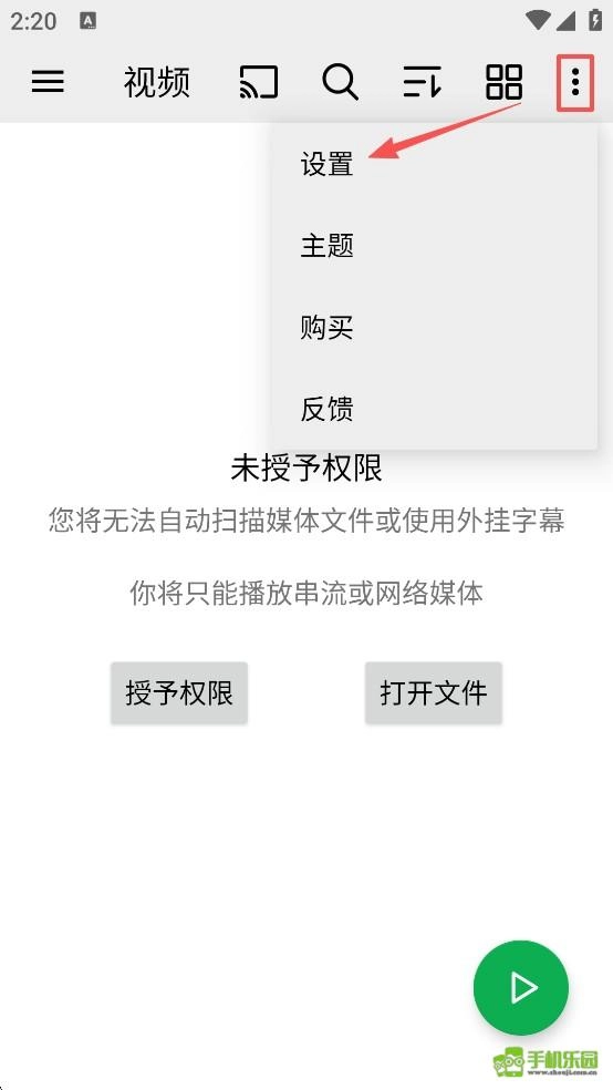 1、启动oplayer播放器应用,点击界面右上角的“更多”选项,再选择“设置”。
