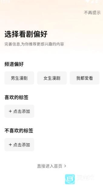 1、在本站好七猫漫剧,运行软件并选择看剧偏好;