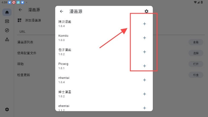3、自定义加入想要的漫画源;