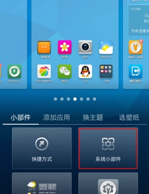 4、将小工具添加至桌面的操作步骤:长按桌面空白区域,随后选择“添加小部件”选项,在弹出的选择界面中点击“系统小部件”即可。