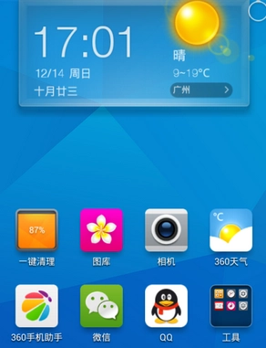 6、查看与更新天气:返回桌面后,能看到360天气小工具已添加至桌面,触摸该小工具即可更新当前位置的天气信息。